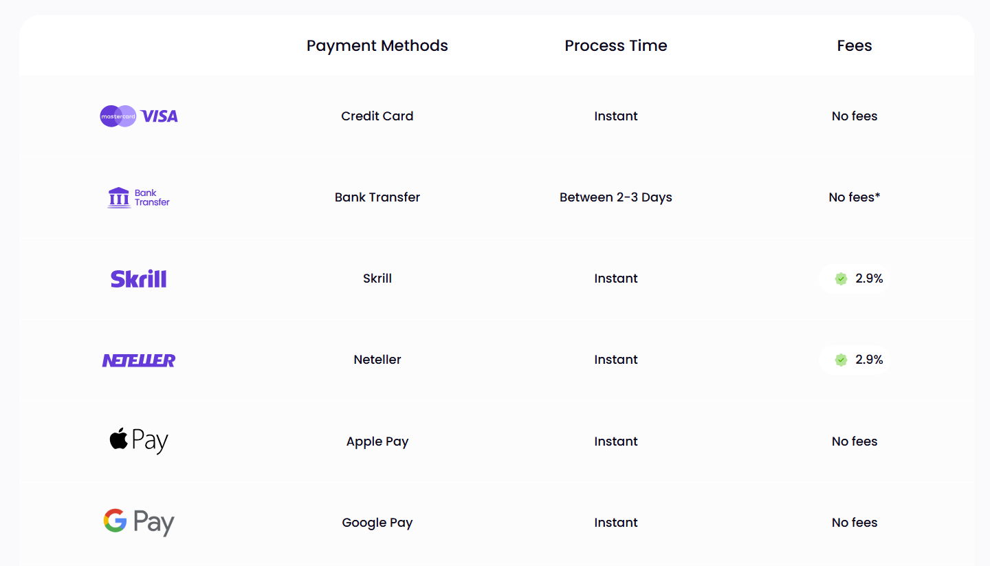 We understand just how important the convenience of deposits and speed of withdrawals are to our clients. We prioritise this, and as such, we have created an offering with a wide selection of convenient payment methods and a streamlined process. We take all reasonable steps to ensure that there is no delay between you placing a deposit or withdrawal request and the transaction being processed.